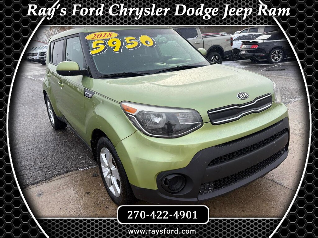 Jump into this vibrant Green 2018 Kia Soul and get ready to zip around town with its peppy 1.6L engine and smooth 6-speed manual transmission. This Front-Wheel Drive vehicle is perfect for cruising with friends or running errands solo, offering a fun and efficient ride. The sculpted body design is accented with stylish 16 alloy wheels and a sleek black grille with chrome surround, making a statement wherever you go. Inside, the cabin is comfortable and spacious, featuring a user-friendly 5.0 touch screen, Bluetooth technology, and a SiriusXM satellite radio to keep you entertained on the road. The versatile seating allows for plenty of cargo space when needed, whether you're hauling groceries or packing for a weekend getaway. With safety features like dual-stage airbags, rear child safety locks, and a Carfax report available, you can enjoy peace of mind while driving this reliable and stylish Kia Soul. Don't miss out on the opportunity to experience the fun and practicality that this well-equipped used car has to offer! Visit Ray's Ford online at www.raysford.com to see more pictures of this vehicle or call us at 270-422-4901 today to schedule your test drive.